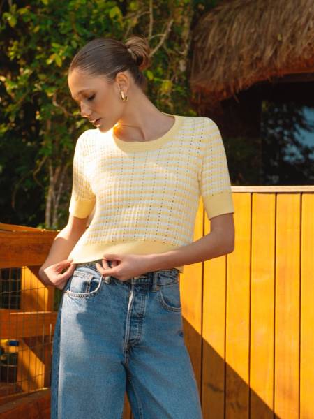 BLUSA KENZA APRESENTA MODELAGEM MAIS SLIM. POSSUI UM DECOTE REDONDO MAIS ABERTO, MANGAS CURTAS.