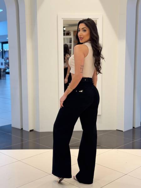 CALÇA PERNA RETA JEANS PRETO