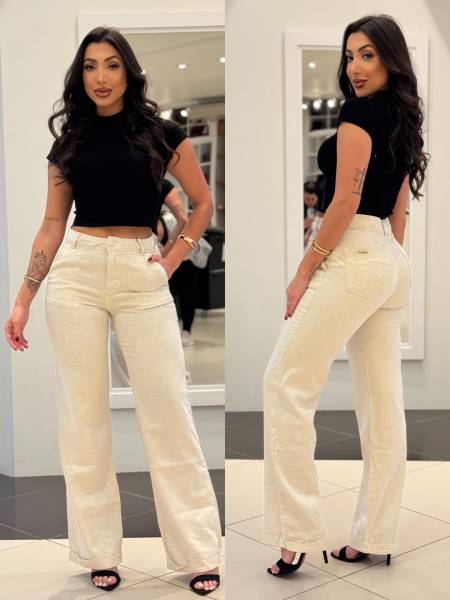 CALÇA RETA DE LINHO (DEFINIDA JEANS)