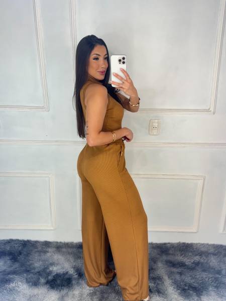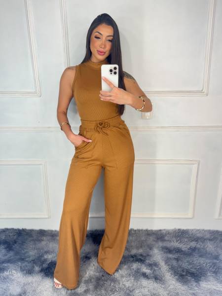 CALÇA WIDE LEG CANELADA TEXTURIZADA ROSA BELLA