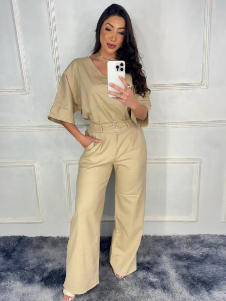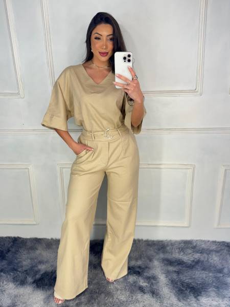 CONJUNTO EM LINHO MAIS AMPLO E ELEGANTE, É UMA PEÇA MAIS SOFISTICADA E MODA MULHER, COM DECOTE EM V O QUE VALORIZA O BUSTO E DA UMA SENSAÇÃO DE ALONGAR, TEM FORRO NA PARTE DA CALÇA PARA MAIOR CONFORTO.