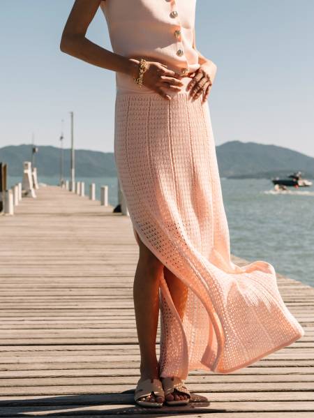 SAIA ANETTE CONFECCIONADA COM PONTOS VAZADOS E FENDAS NAS LATERAIS DANDO UM CAIMENTO ESPECIAL PARA A PEÇA, TAMBÉM POSSUI ELÁSTICO NA CINTURA DEIXANDO A PEÇA MAIS CONFORTÁVEL.