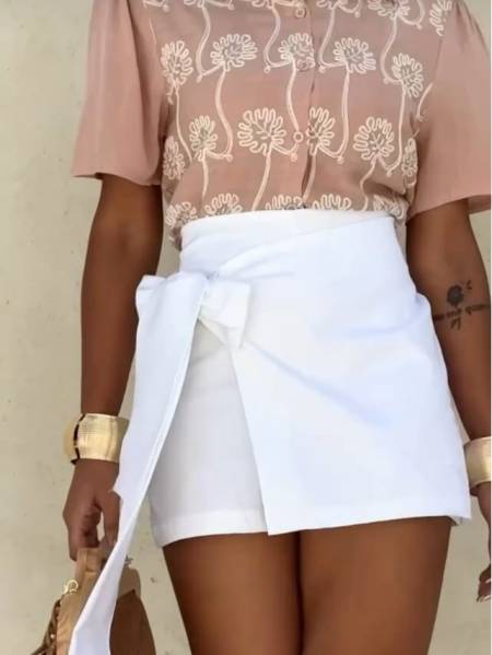 SHORT-SAIA COM CINTURA ALTA, DETALHE FRONTAL EM SOBREPOSIÇÃO E AMARRAÇÃO EM LAÇO, QUE TRAZ CHARME E SOFISTICAÇÃO. PEÇA VERSÁTIL E ELEGANTE, PERFEITA PARA COMPOR LOOKS FRESCOS E MODERNOS, IDEAL PARA DIAS QUENTES OU OCASIÕES CASUAIS COM UM TOQUE REFINADO.