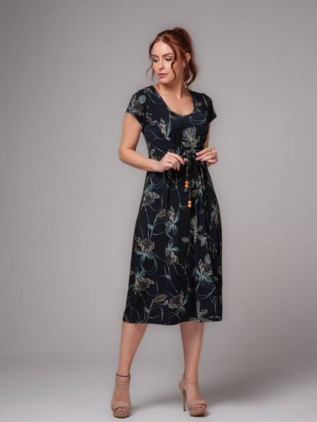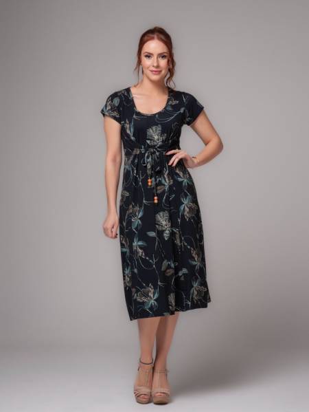 VESTIDO MALHARIA SUELEM VISCOLYCRA DIGITAL COM AMARRAÇÃO FRONTAL